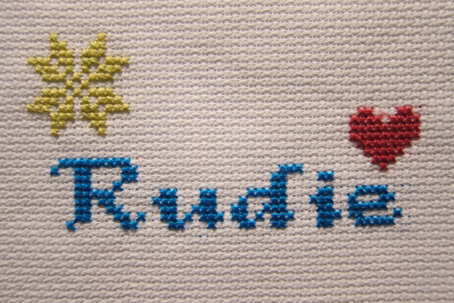 自創的十字繡圖案,Rudie, my star and my love …