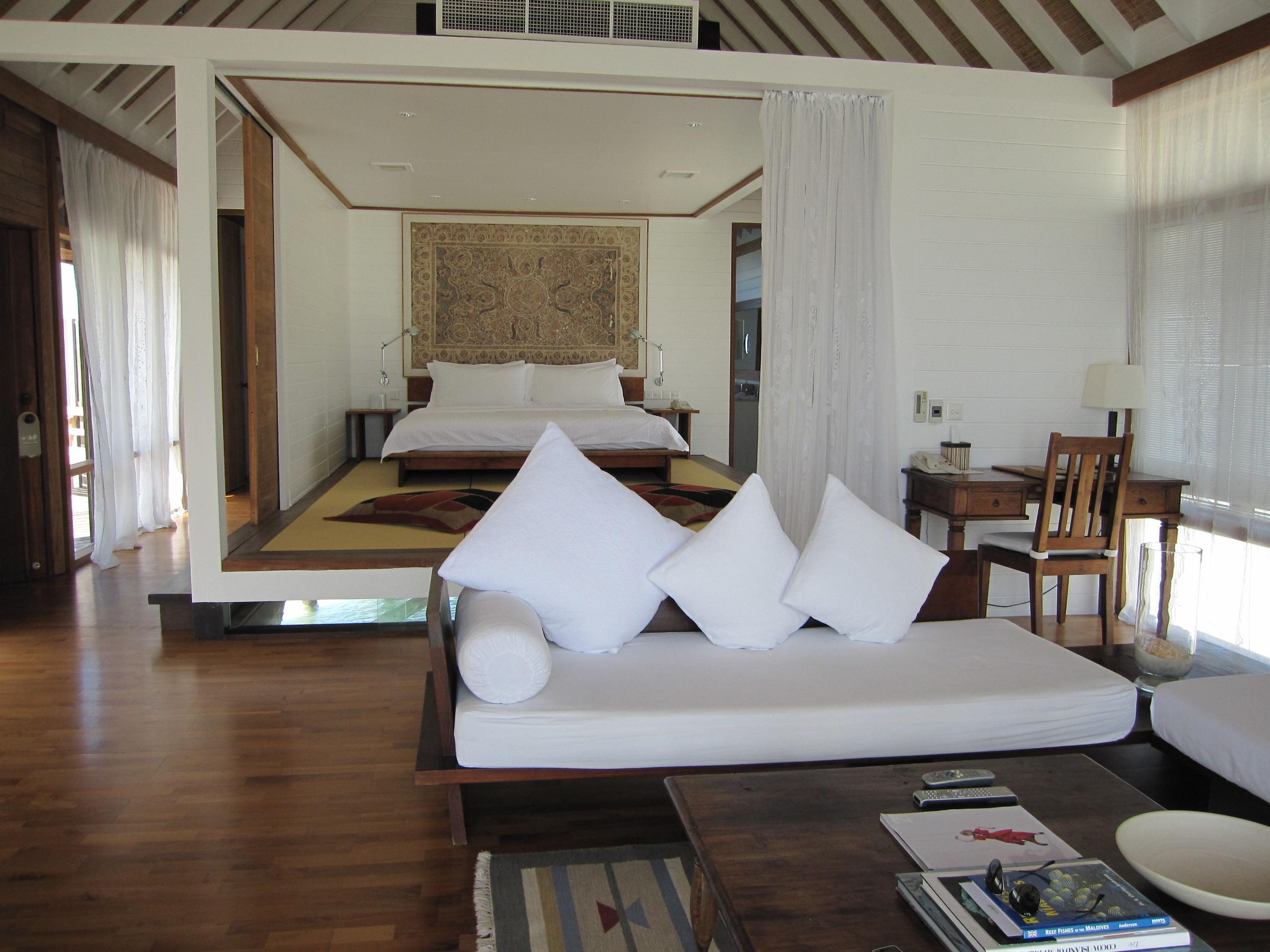 The One Bedroom Villa is absolutely fabulous, a lot larger than the Dhoni Suite with amazing views. We were even lucky enough to catch the sunrise on one occasion. The major advantage over the suites is the enormous sundeck area. Also, the bathroom is a lot larger.