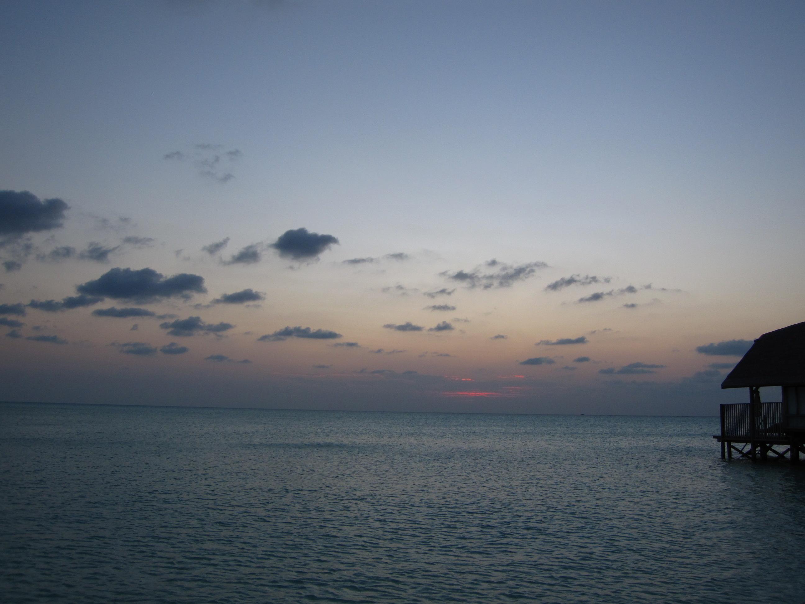 活了這麼多年,也未看過日出。多謝 Cocoa Island 的 free upgrade,在 One Bed Room Villa 的 terrace 是可很清楚看到日出,如要我 6:00am 多走出去看,我好可能已錯過如此美景。
