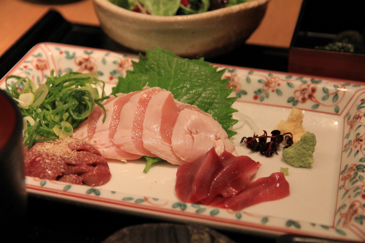 原來這個 set 的 main course 是 Chicken Sashimi!其實上次去 Osaka 已品嘗過生雞刺身,口感像魚生、味道也不錯 …… 但知識上接受不了雞刺身,因為由細到大阿媽都話雞肉一定要煮熟才可吃,更何況這個 set 除了雞肉還有雞內藏刺身!