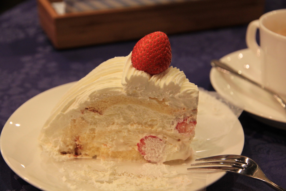 不知是幻覺 (去旅行,心情好,吃什麼也特別好味!)、還是什麼,這裡的 cake 特別好味,那層 sponge cake 又鬆軟又有蛋味,cream 又滑又香,士多啤梨又甜 …… 真是一個夢幻組合。
