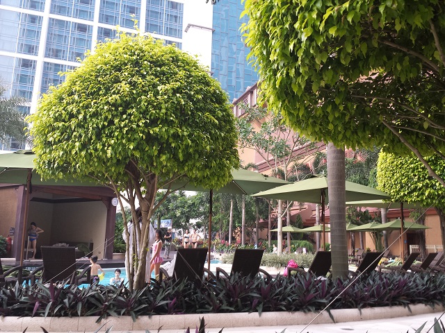 游泳池區有頗多人,但尚算清淨,而且這裡有頗多花花草草格開各游泳池。