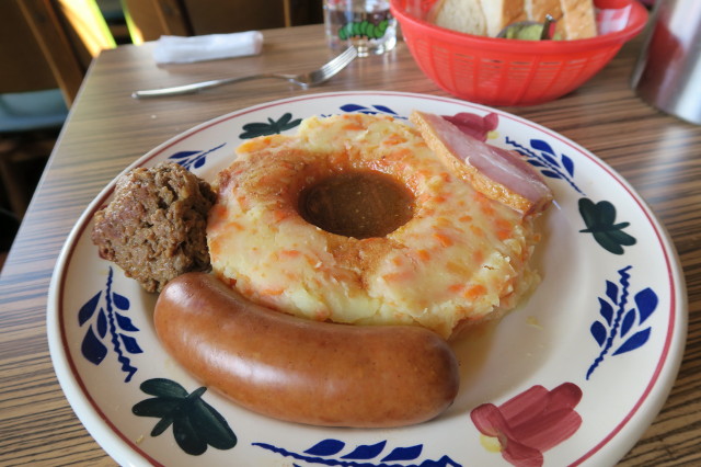served with a sausage of the HEMA, a meatball & bacon