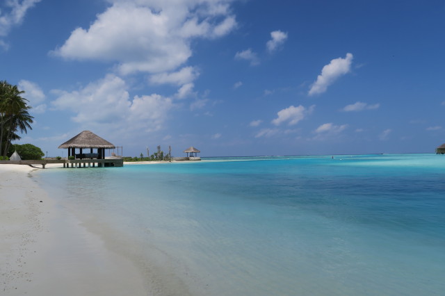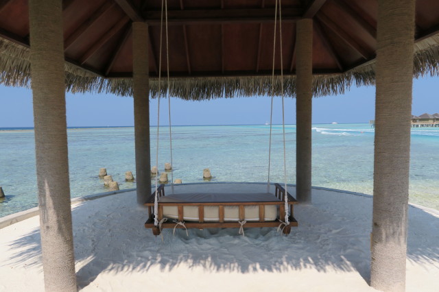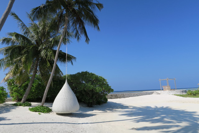 坐下來,腳下全是沙,平常可能會很討厭滿腳是沙的感覺,不過在 Maldives 感覺又大不同。