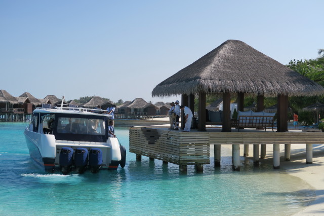 搭 speedboat 到達 arrival jetty,有三個職員來迎接你。