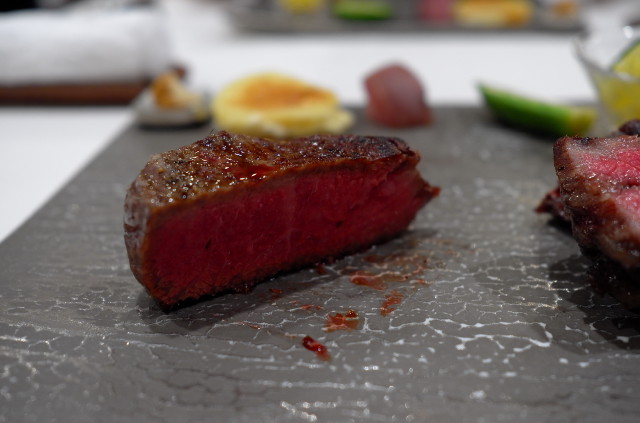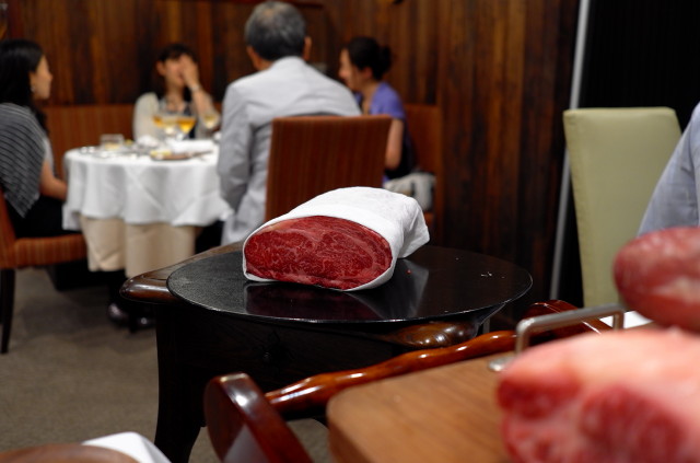 點餐時,服務員會介紹各種牛肉,sirloin steak 有三款、grass-fed beef、aging Kagoshima beef & Omi beef,tenderloin steak (Hitachi beef) and rump steak (Akagi beef)。