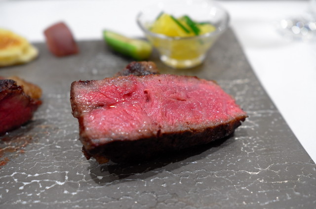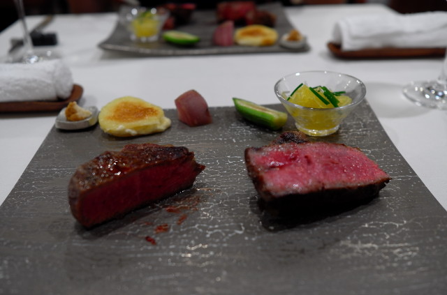 我們點了兩款 sirloin steak,aging Kagoshima beef & Omi beef