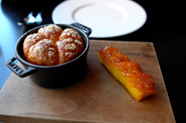 Meat Fruit, Mandarin, chicken liver parfait & grilled bread