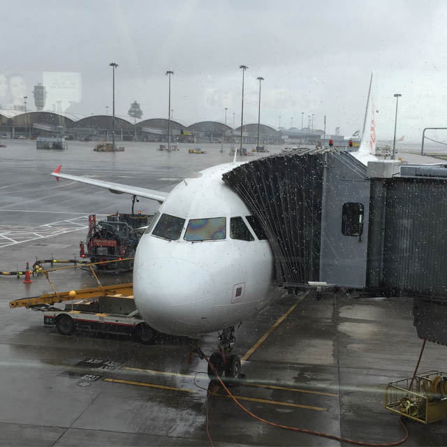 8 號風球徐下,即刻去機場。