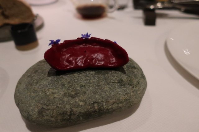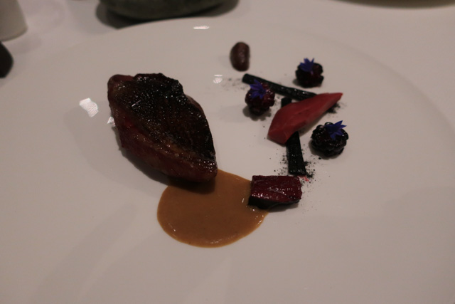 Breast, preserved blackberries, beetroot “liquorice”, sauce of the bones thickened with duck liver