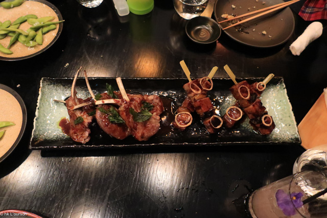 Lamb Chop, Charred eggplant purée, aka miso, vegemite, basil
