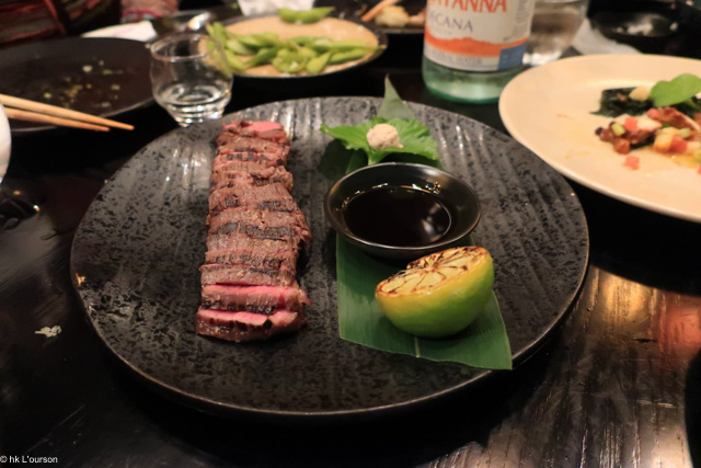 Wagyu Flank Steak Shio koji marinade, Fresh Tasmanian wasabi, garlic ponzu