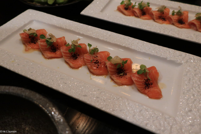 Ocean Trout, Yukari & wasabi salsa, yuzu soy, garlic chips