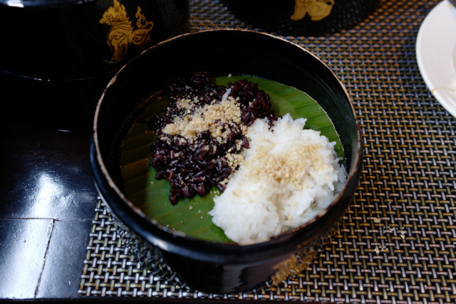 Sticky rice duo with salted sesame powder