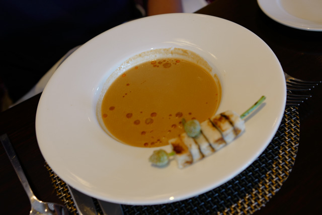 Shellfish bisque with shrimp crostini and fresh vanilla
