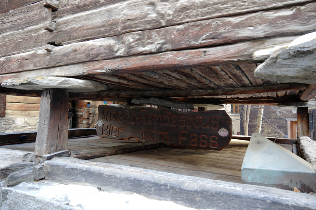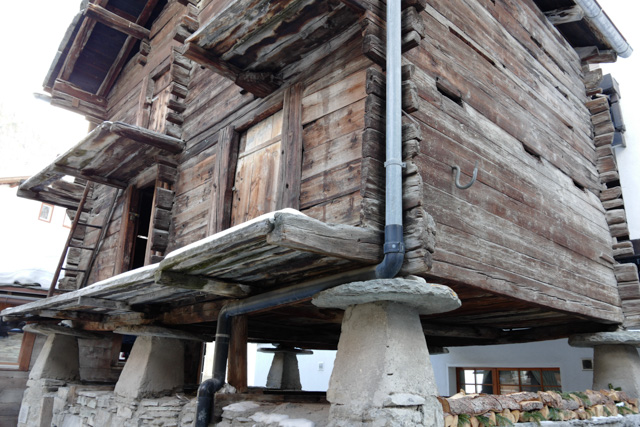 The building stands on typical flat, round slabs of stone, which prevent mice and other vermin from entering.