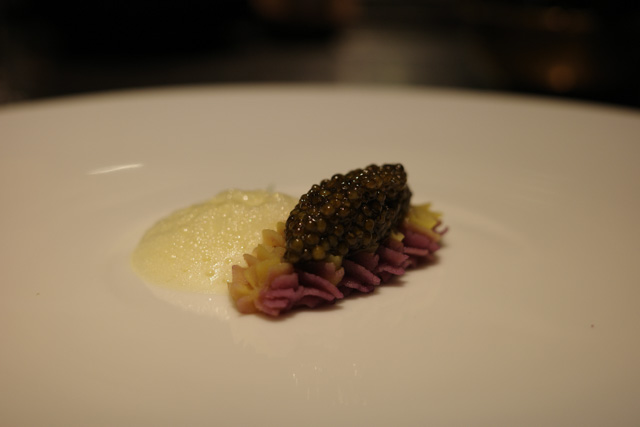Uruguayan Ossetra Royal caviar / Causa limeña / Kalamata olives