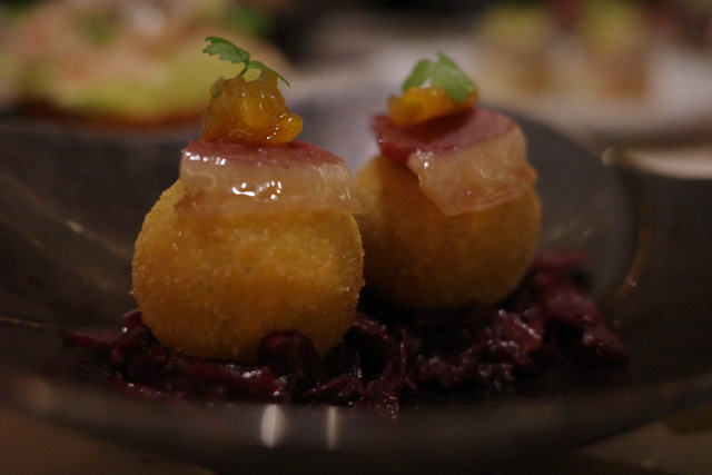 Croquettes with Mulard Duck, Red Cabbage & Kumquat Marmalade