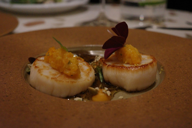 Pan-seared Hokkaido Scallops with Pumpkin Purée, Tarragon & Mandarin