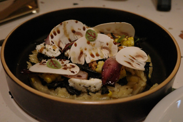 Puntalette with Black Trumpet Mushroom, Roasted Corn & Balsamic-glazed Radicchio