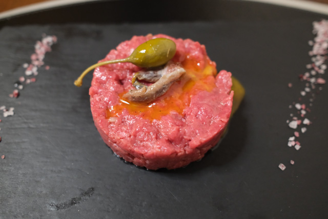 Tartare, anchovies, capers, Tropea’s red onion and egg yolk